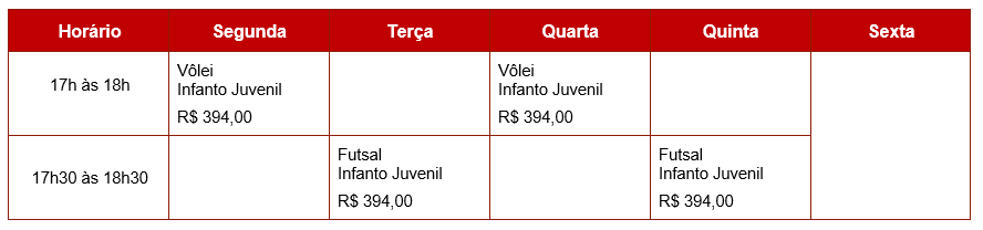 Selecione o segmento para ver os dias e horários das atividades